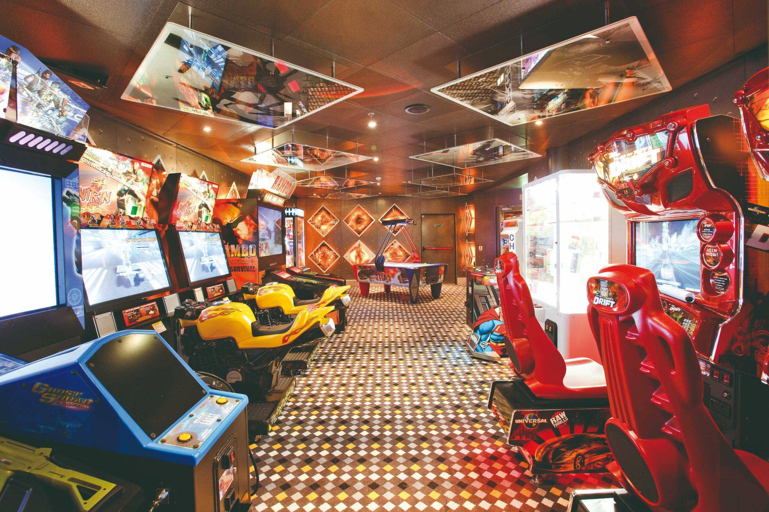 Sala de Jogos ArcadeUm espaço dinâmico onde pessoas de todas as idades podem se divertir com uma grande variedade de jogos e videogames.